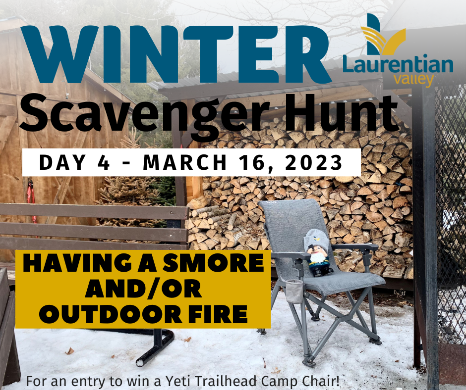 This submission qualifies you for a chance to win a YETI Trailhead Camp Chair! Participate each day until March 17th for more chances to be entered into the draw. LV residents and non-residents are permitted to participate. For full contest rules please visit: https://calendar.lvtownship.ca/default/Detail/2023-03-17-0800-LV-Winter-Scavenger-Hunt