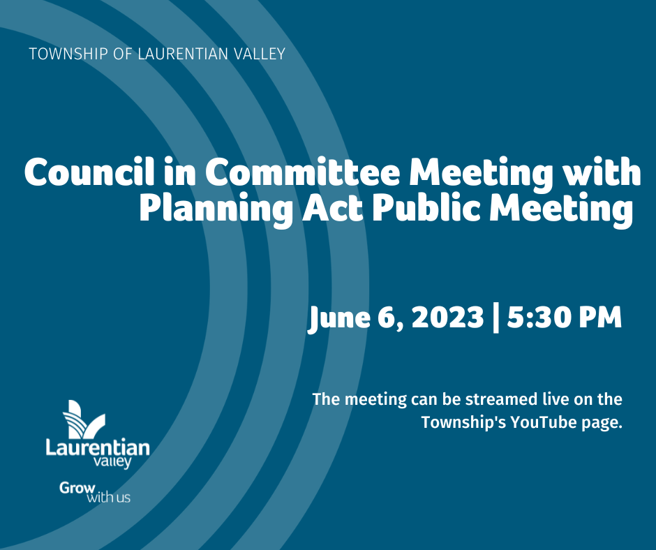We will be conducting a Council in Committee Meeting with Planning Act Public Meeting on Tuesday, June 6, 2023 at 5:30pm. The meeting portion will be livestreamed to the Township’s YouTube Channel and can be viewed at the specified time above.