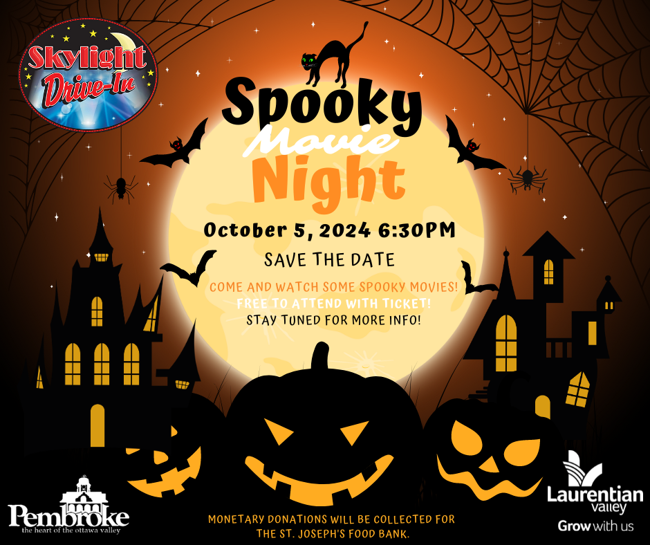 The Township of Laurentian Valley and the City of Pembroke present a Spooky Movie Night at the Skylight Drive-In!