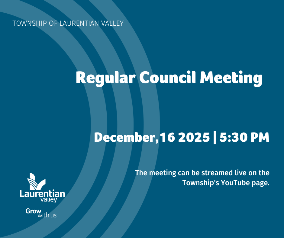Where: Township of Laurentian Valley Council Chambers and livestreamed on the Township's YouTube Channel