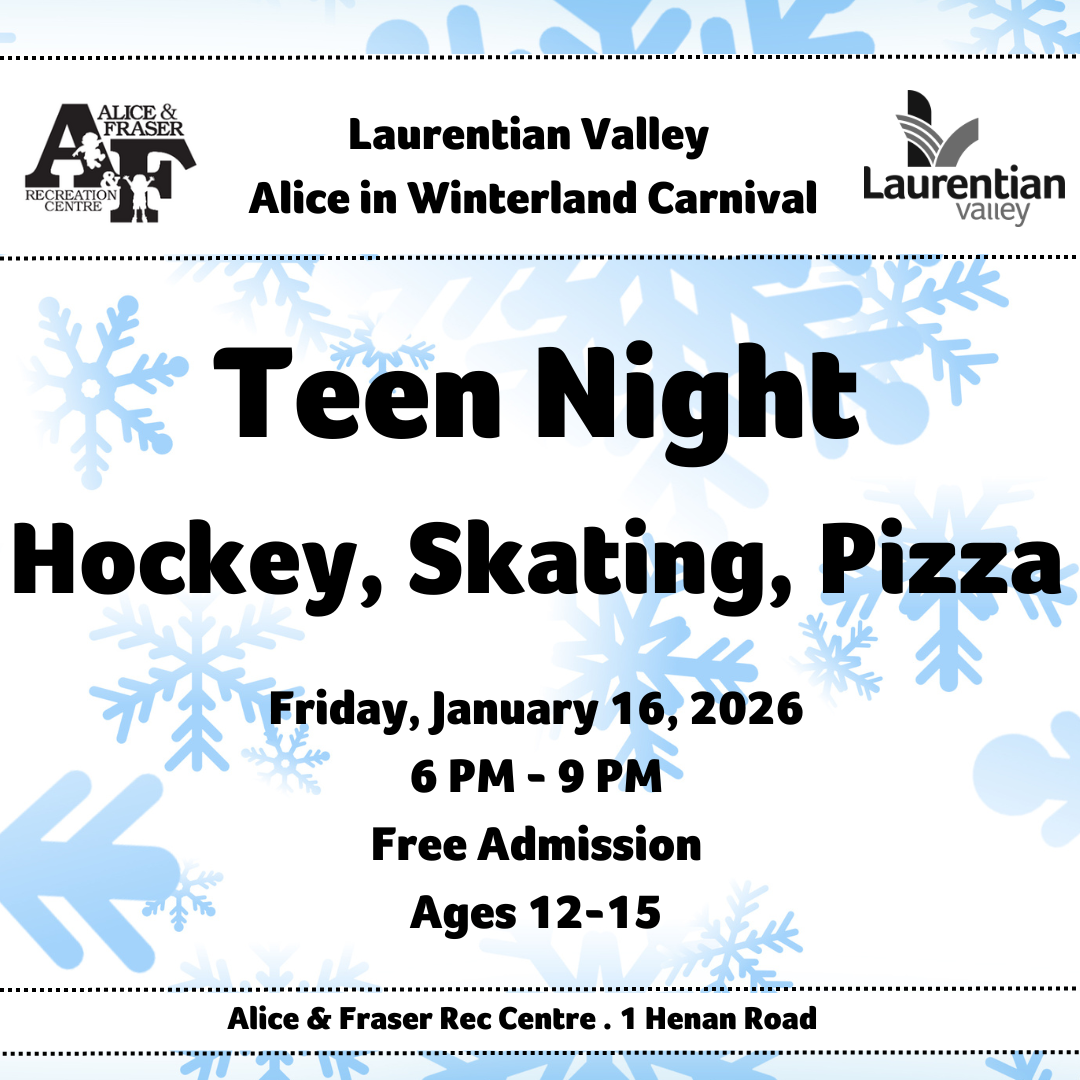 The 2026 Laurentian Valley Alice in Winterland Carnival is a fun week long event that runs from January 16 - 23, 2026. The event will kick off with Teen Night: