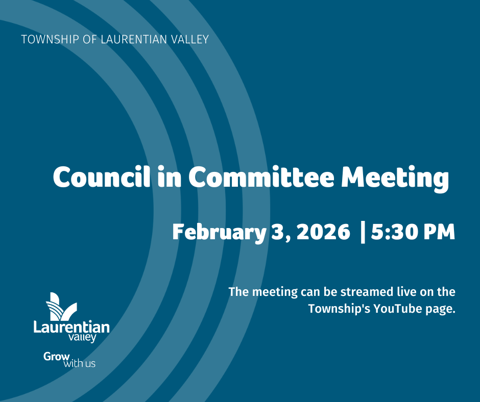 Where: Township of Laurentian Valley Council Chambers and livestreamed on the Township's YouTube Channel