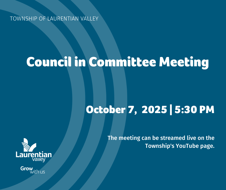 Where: Township of Laurentian Valley Council Chambers and livestreamed on the Township's YouTube Channel