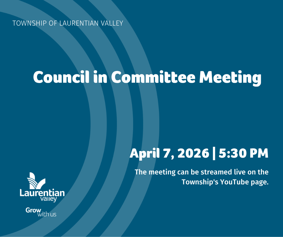 Where: Township of Laurentian Valley Council Chambers and livestreamed on the Township's YouTube Channel